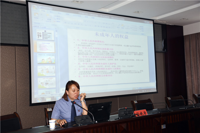 緊接著,專門負責未檢工作的檢察官孫曉宇以“未成年人的權益保護”為主題開展了法治專題講座。通過播放動漫視頻,用“藥家鑫”、“李天一”等典型案例釋法說理,向同學們講述未成年人不良行為的危害以及如何運用心理學緩解不良情緒,處理危機事件。同學們?nèi)虩崆閰⑴c,積極舉手回答問題,現(xiàn)場氣氛十分熱烈。